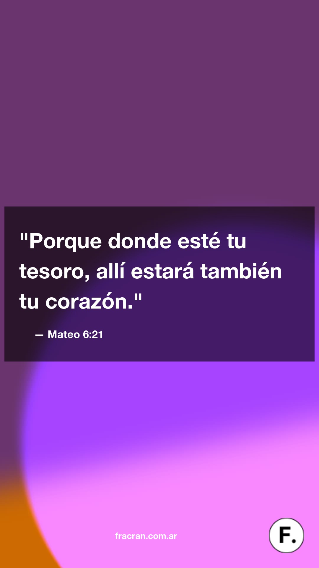 "Porque donde esté tu tesoro, allí estará también tu corazón."