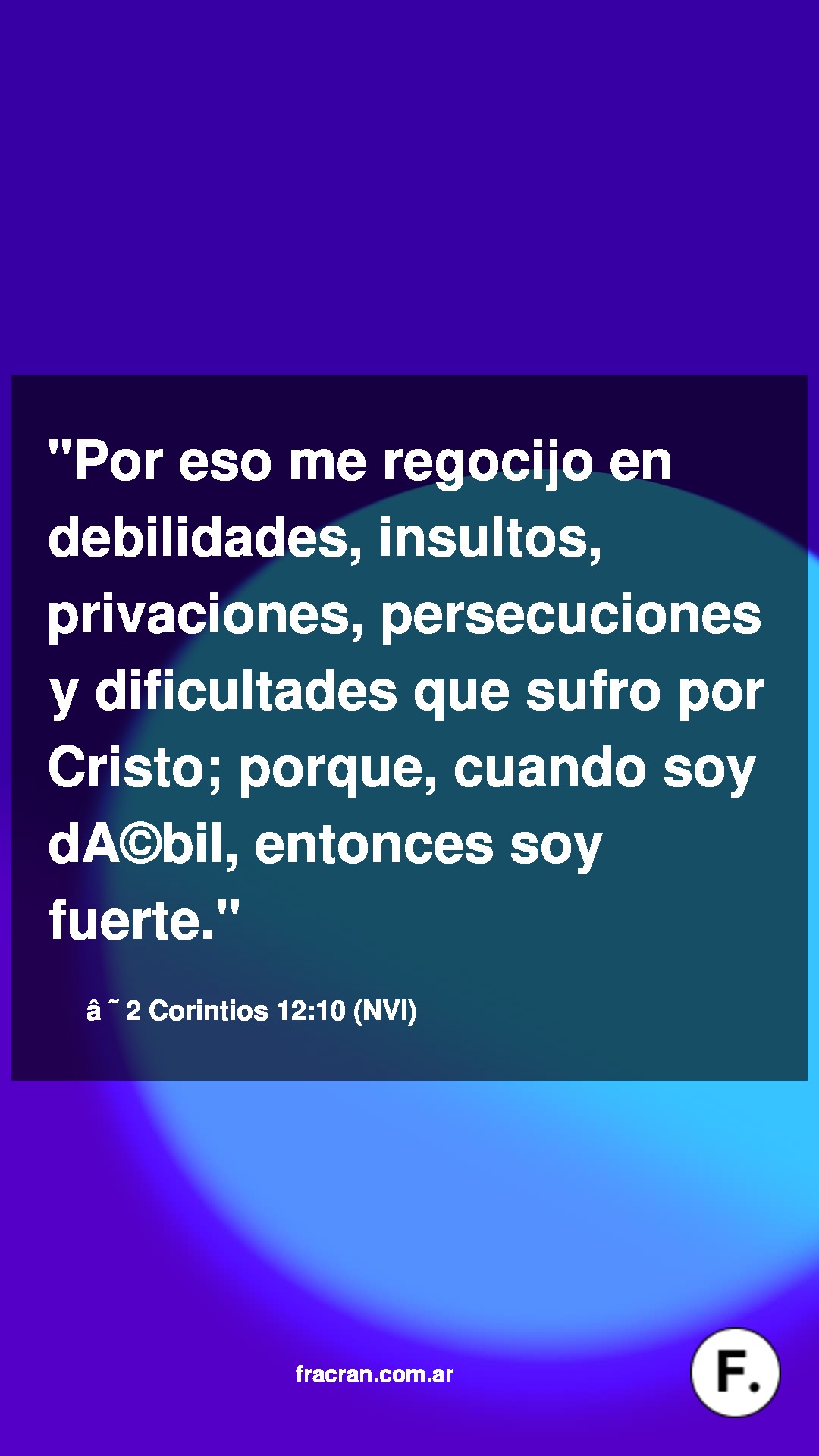Por eso me regocijo en debilidades, insultos, privaciones, persecuciones y dificultades que sufro por Cristo; porque, cuando soy débil, entonces soy fuerte.