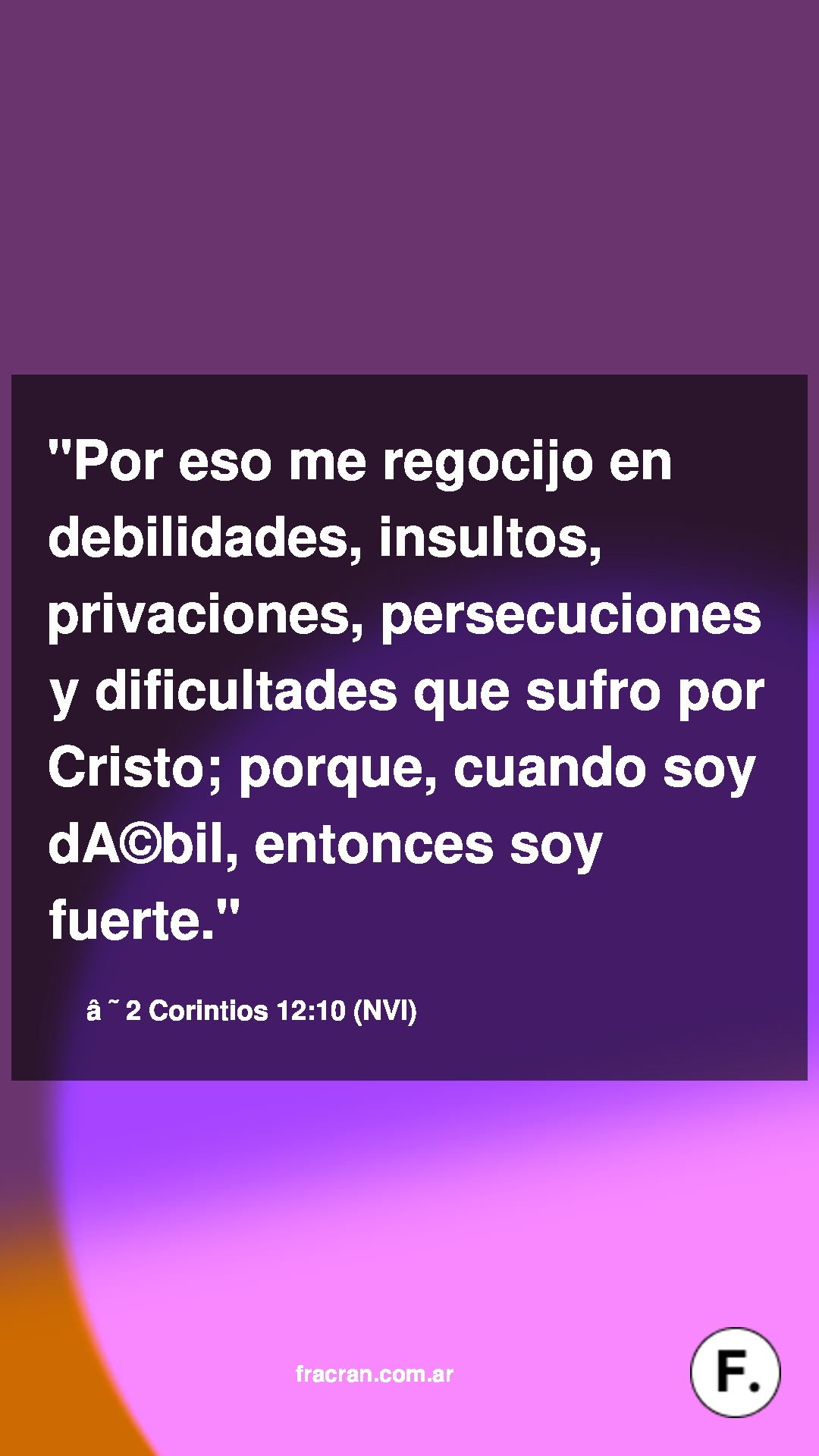 Por eso me regocijo en debilidades, insultos, privaciones, persecuciones y dificultades que sufro por Cristo; porque, cuando soy débil, entonces soy fuerte.