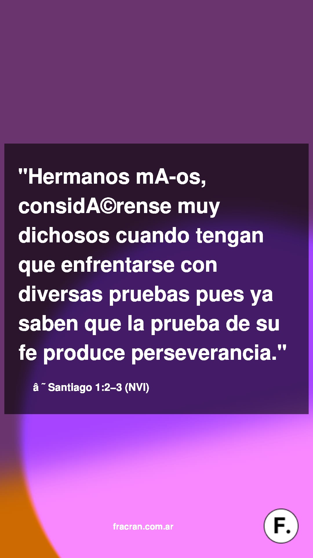 "Hermanos míos, considérense muy dichosos cuando tengan que enfrentarse con diversas pruebas pues ya saben que la prueba de su fe produce perseverancia."