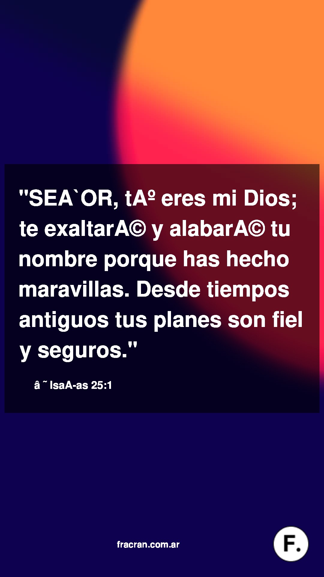 SEÑOR, tú eres mi Dios; te exaltaré y alabaré tu nombre porque has hecho maravillas. Desde tiempos antiguos tus planes son fieles y seguros.