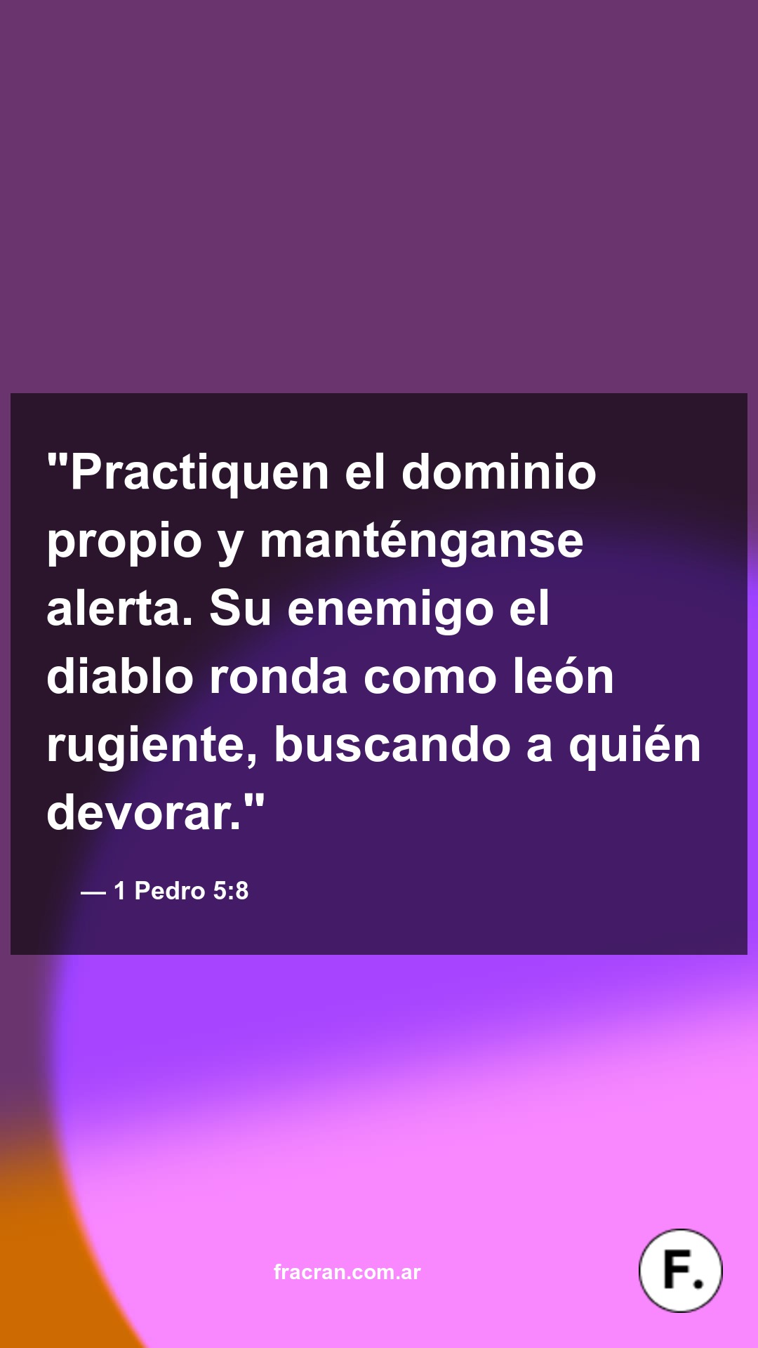 Practiquen el dominio propio y manténganse alerta. Su enemigo el diablo ronda como león rugiente, buscando a quién devorar.