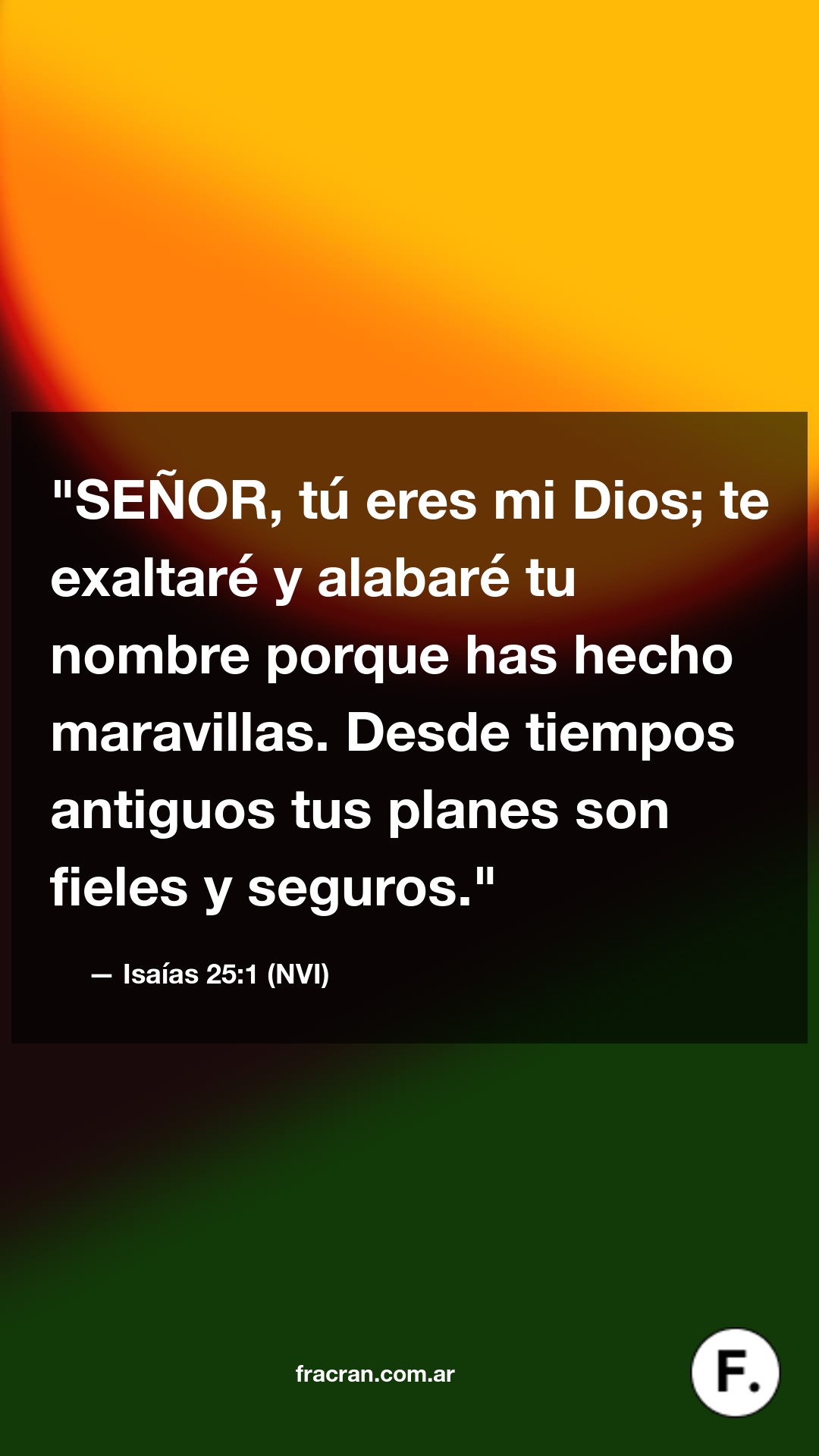 SEÑOR, tú eres mi Dios; te exaltaré y alabaré tu nombre porque has hecho maravillas. Desde tiempos antiguos tus planes son fieles y seguros.