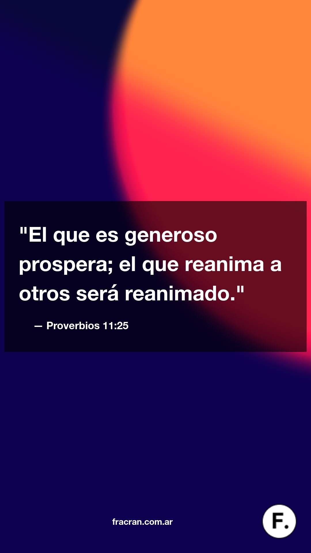 "El que es generoso prospera; el que reanima a otros será reanimado."