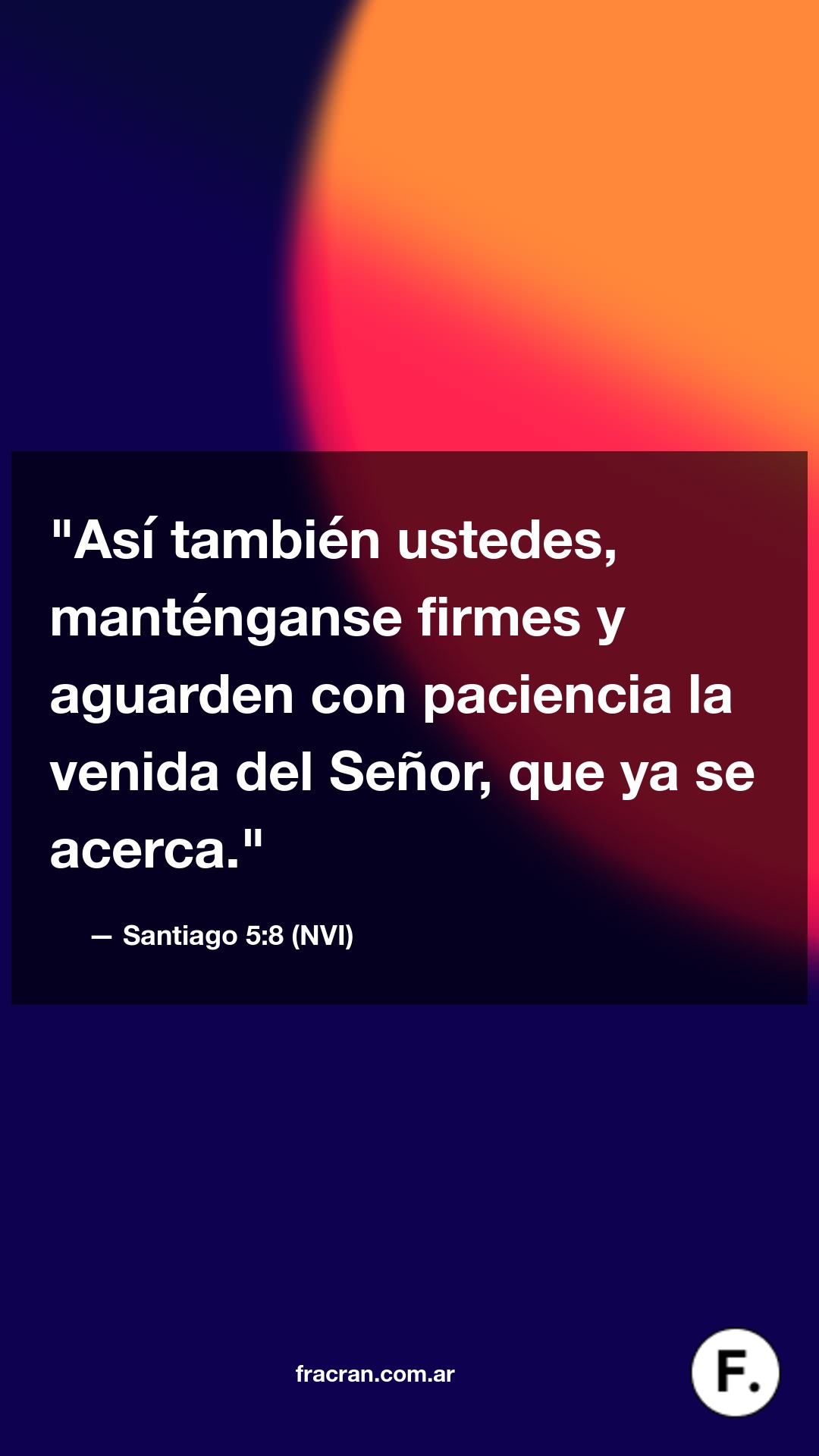 Así también ustedes, manténganse firmes y aguarden con paciencia la venida del Señor, que ya se acerca.