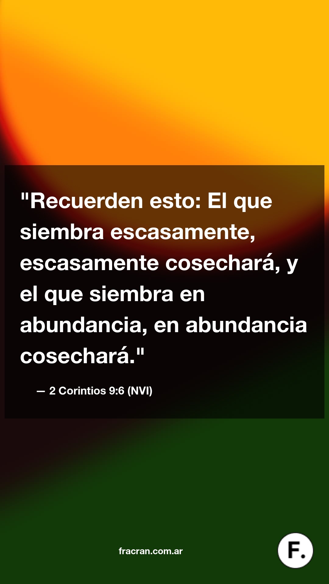 Recuerden esto: El que siembra escasamente, escasamente cosechará, y el que siembra en abundancia, en abundancia cosechará.