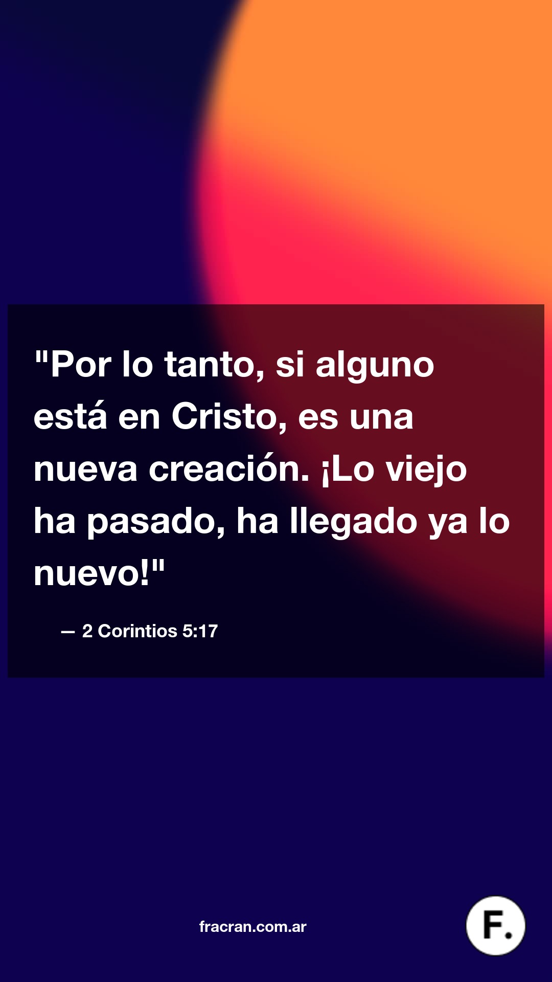 Por lo tanto, si alguno está en Cristo, es una nueva creación. ¡Lo viejo ha pasado, ha llegado ya lo nuevo!