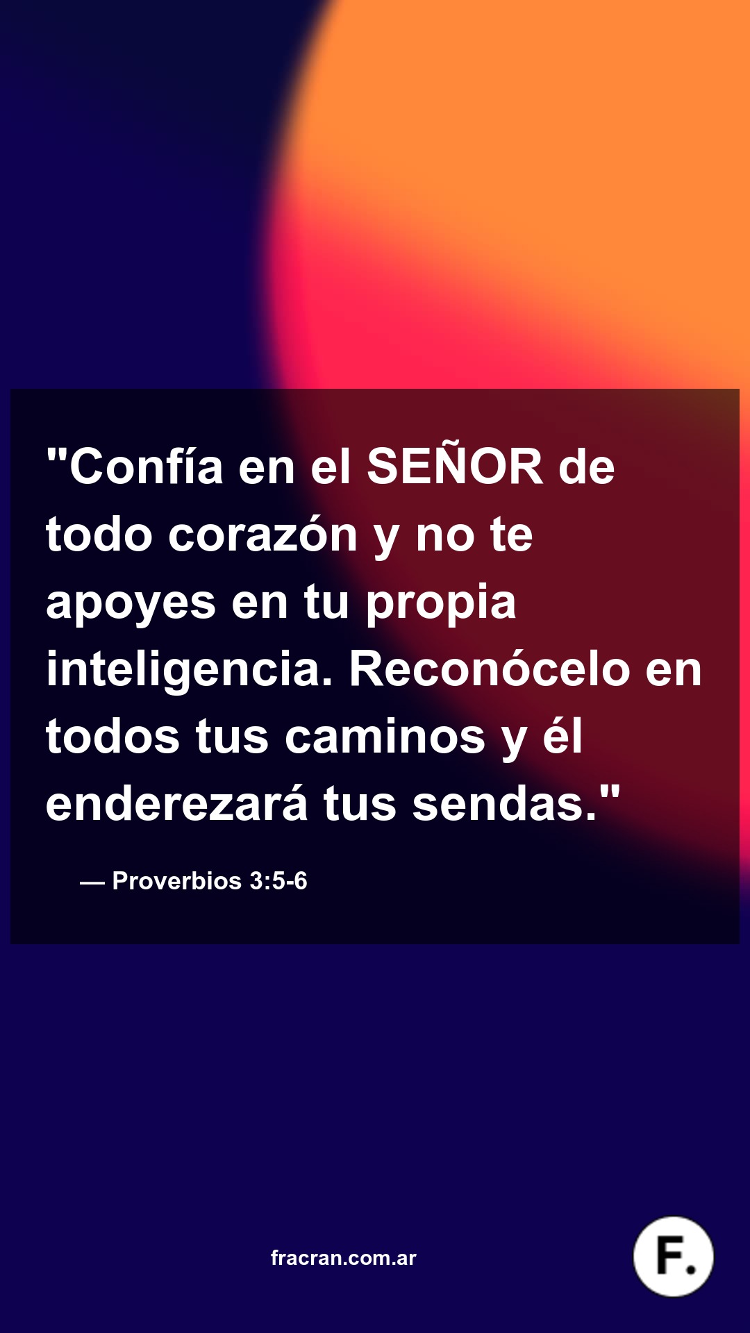 "Confía en el SEÑOR de todo corazón y no te apoyes en tu propia inteligencia. Reconócelo en todos tus caminos y él enderezará tus sendas."