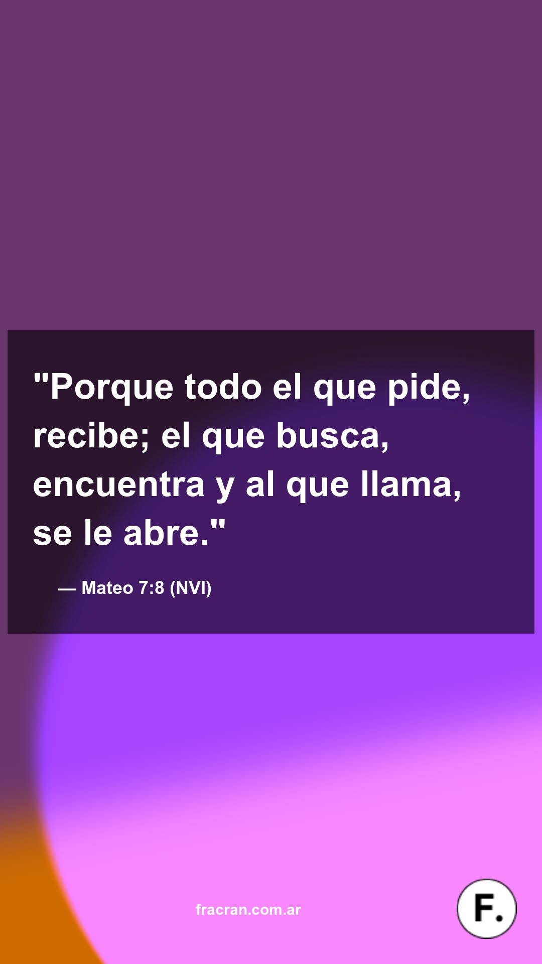 "Porque todo el que pide, recibe; el que busca, encuentra y al que llama, se le abre."
