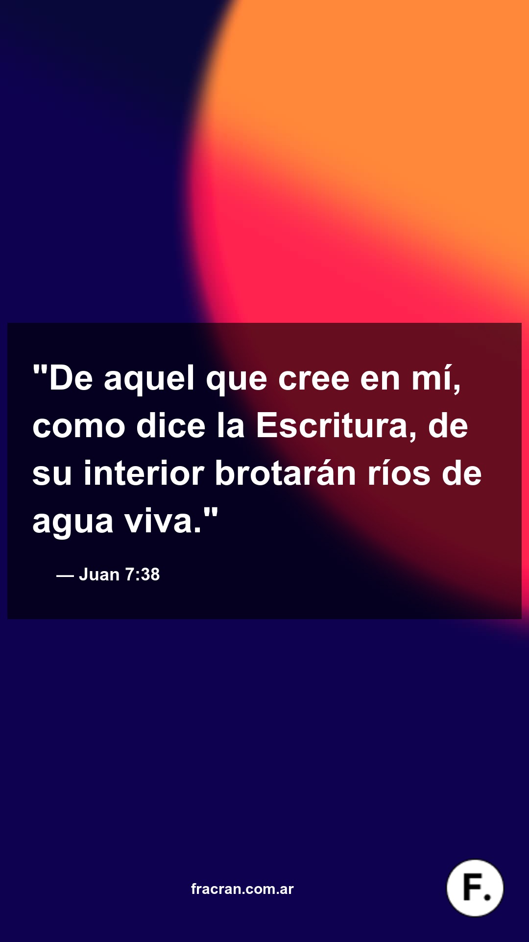 "De aquel que cree en mí, como dice la Escritura, de su interior brotarán ríos de agua viva."